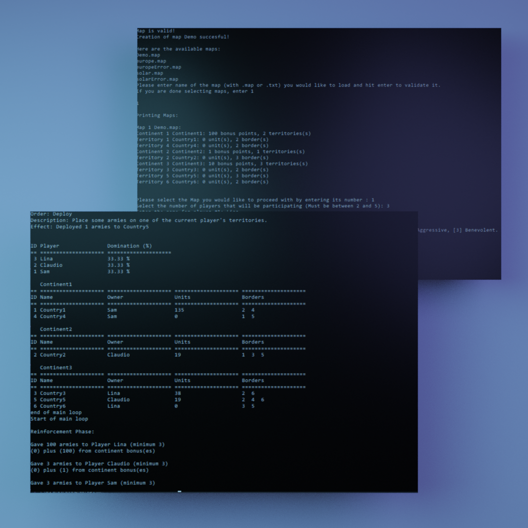 The C++ Risk Game is a project created in a team of 5 within the scope of a C++ course I took at