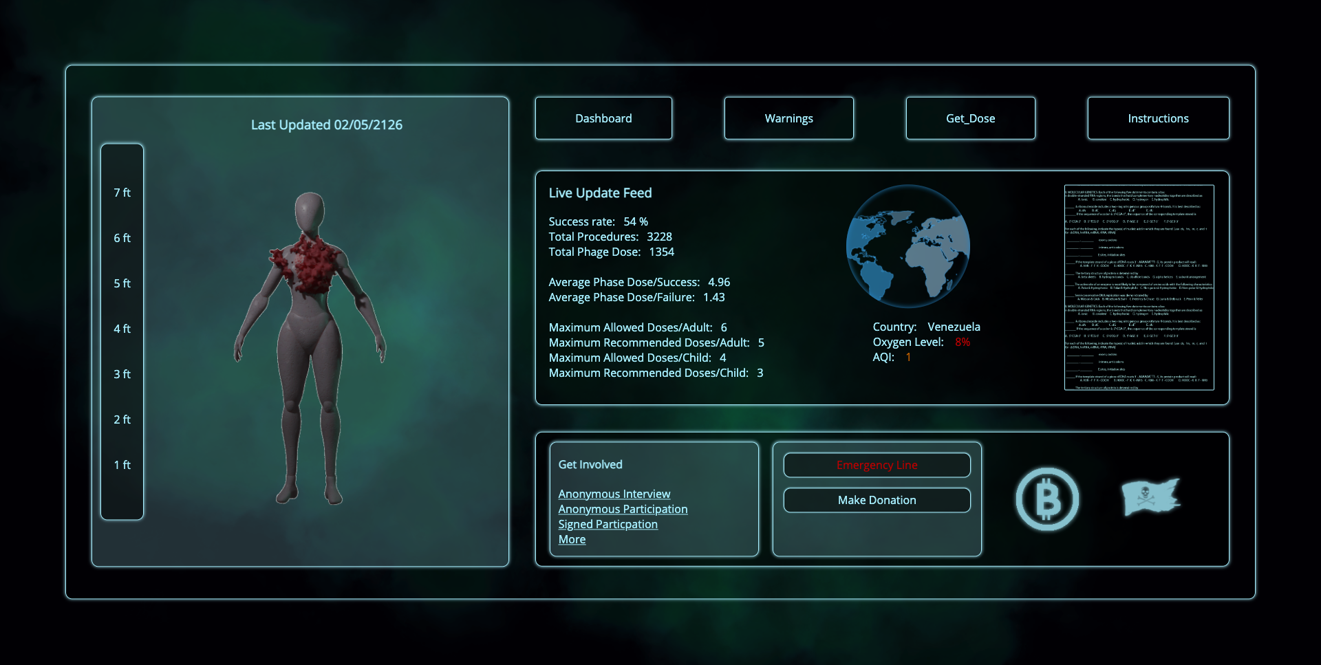 we created a speculative narrative, envisioning a dystopian future where humans have to inject
